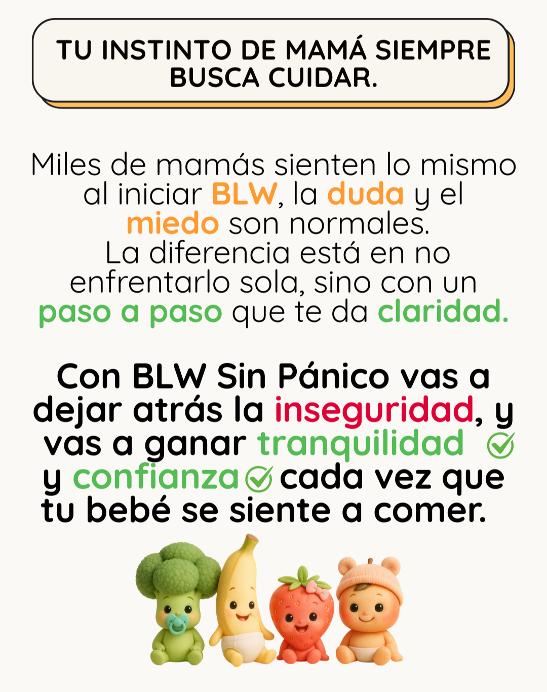 👉 Hoy podés acceder a tu ebook BLW Sin Pánico y llevarte todos los BONOS EXTRA GRATIS incluidos en esta promoción especial de lanzamiento.